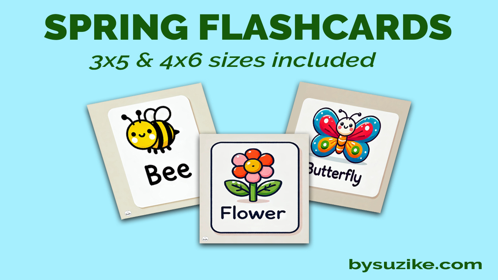 1 PDF file with all flashcards in 3x5 inch size 1 PDF file with all flashcards in 4x6 inch size 10 illustrated Spring-themed vocabulary cards: